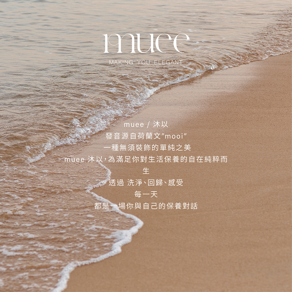 昨晚第一次使用muee 洗臉 洗澡 感覺舒適宜人 對我有惰性者 也能快速沖洗乾淨 希望大家能分享到使用muee後的香味淡雅 皮膚光滑細緻的喜感!